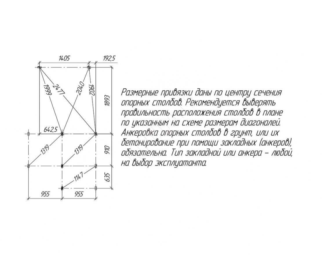 Для установки данной площадки рекомендуется закрепить её анкерами (4 шт). Анкера в комплект не входят, приобретаются дополнительно.