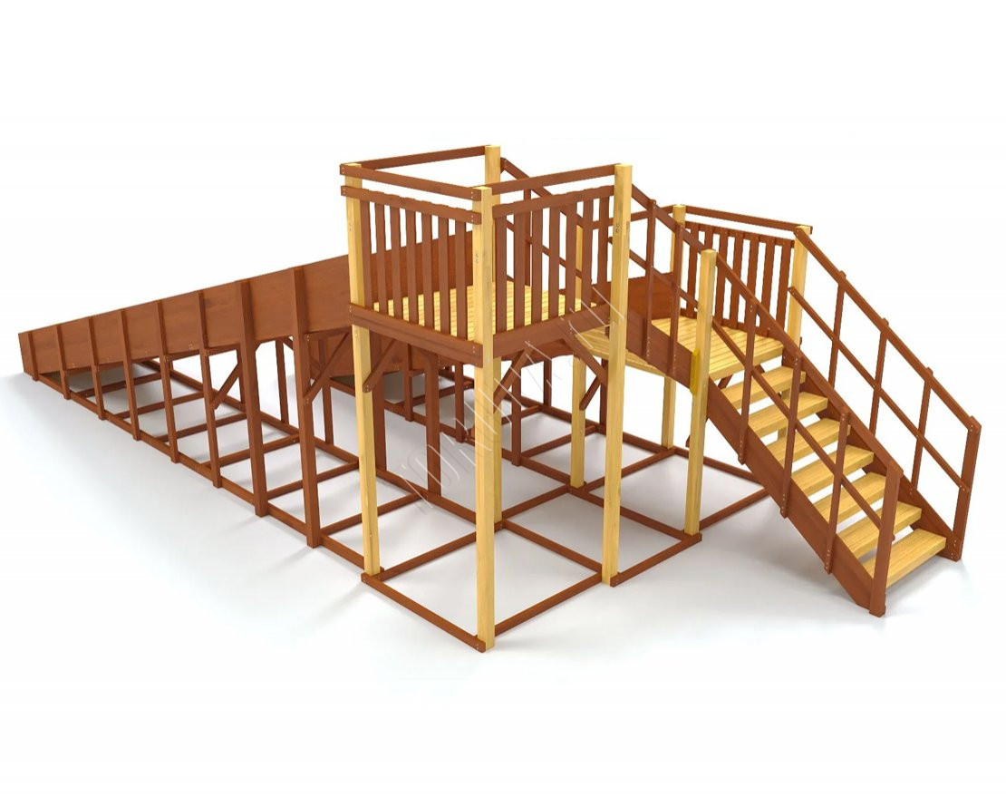 Большое внимание уделено деталям: углы имеют скругления, болты и другие крепежные элементы спрятаны под заглушками. Продуманная конструкция ступеней, высокие перила и страховочные ограждения делают наши площадки удобными и безопасными.