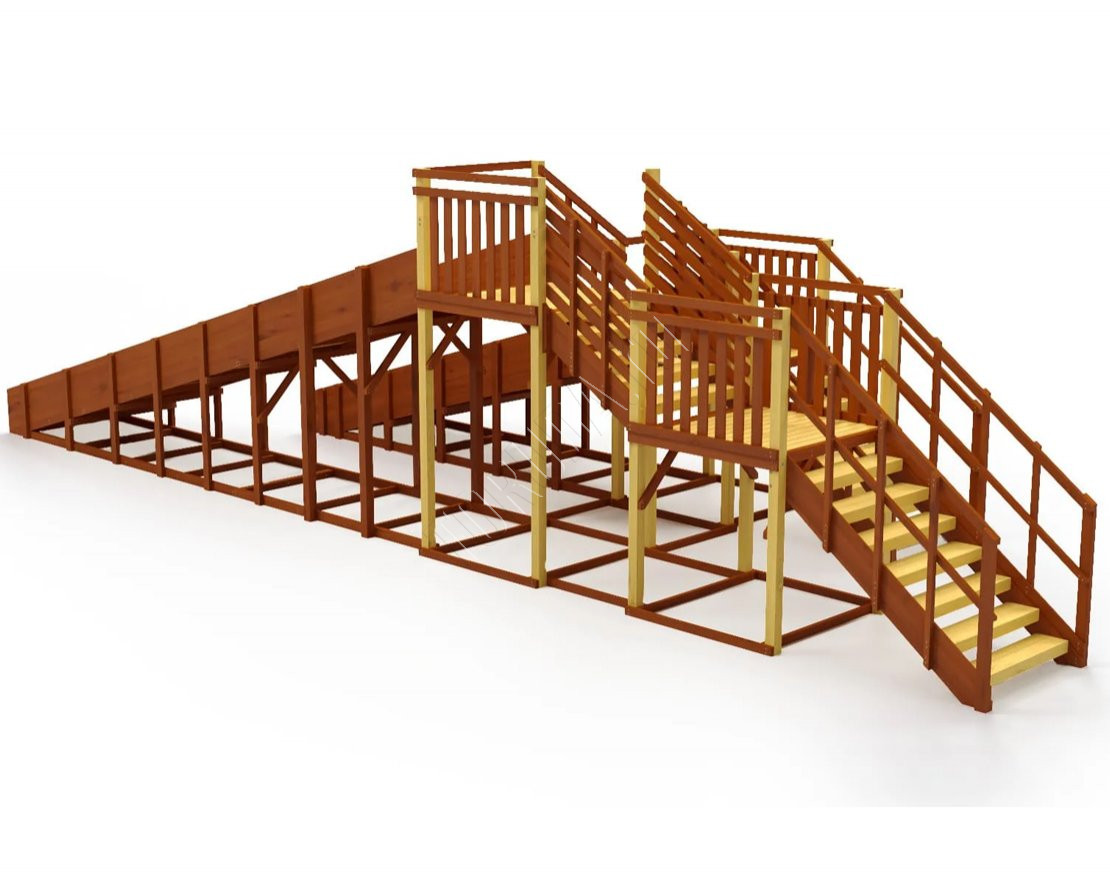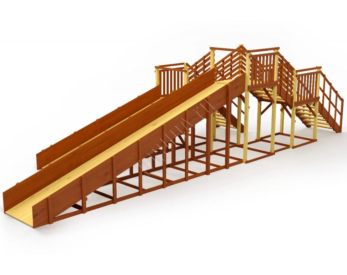 Прочный клееный брус, сертифицированное покрытие и соответствие ГОСТ делают горку надежной и долговечной.