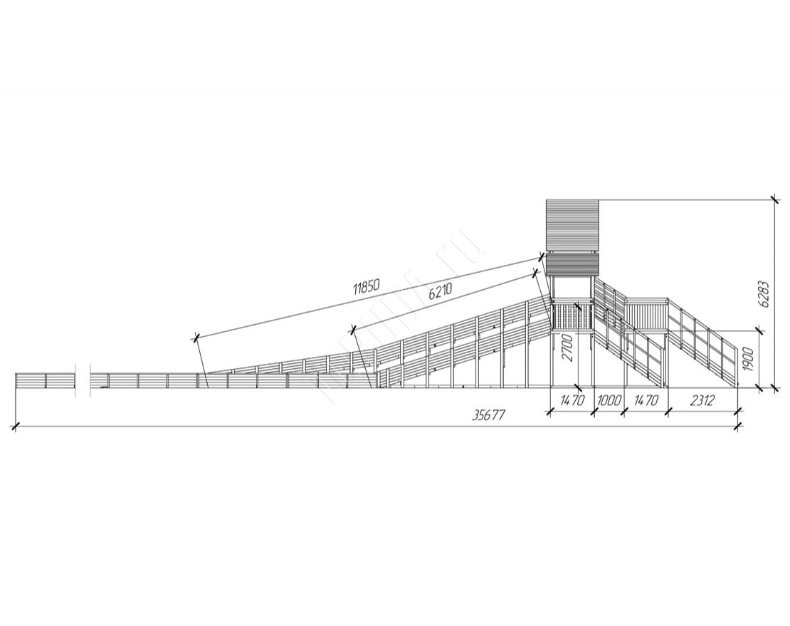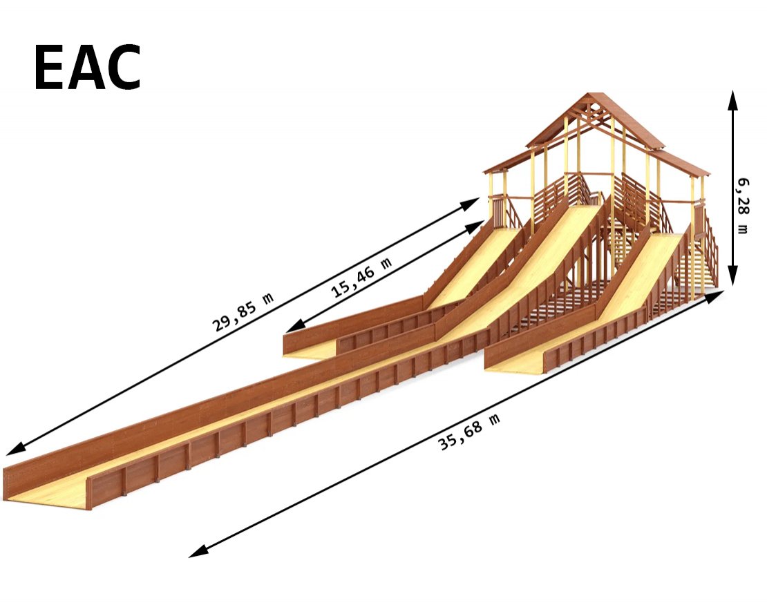 Три мощных ската длиной до 30 метров, которые превращают любую площадку в центр зимнего веселья! Прочная двухуровневая конструкция, широкие лестницы и высокие ограждения делают катание максимально безопасным.