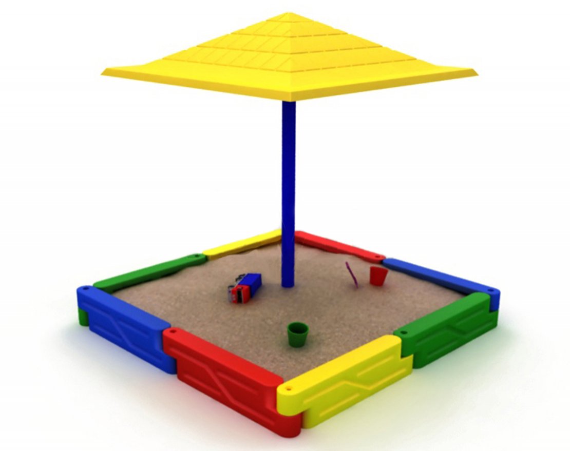 Удобная, классическая песочница квадратной формы впишется в любую детскую площадку, не займёт много места и будет очень красиво смотреться в любом уличном дворе. Бортики песочницы собраны словно из ярких, огромных блоков конструктора, что придаёт надёжной конструкции очень привлекательный, игрушечный вид. Песочница дополнена удобным, высоким квадратным зонтиком, который не будет мешать малышам и защитит их от летнего зноя, а песок – от весенних дождиков.