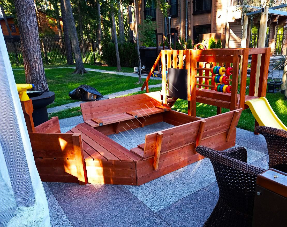 Представляет собой полноценный песочный дворик, который обеспечит ребёнку не только увлекательные игры на свежем воздухе, но и развитие моторики, координации движений, логического мышления и математических навыков.