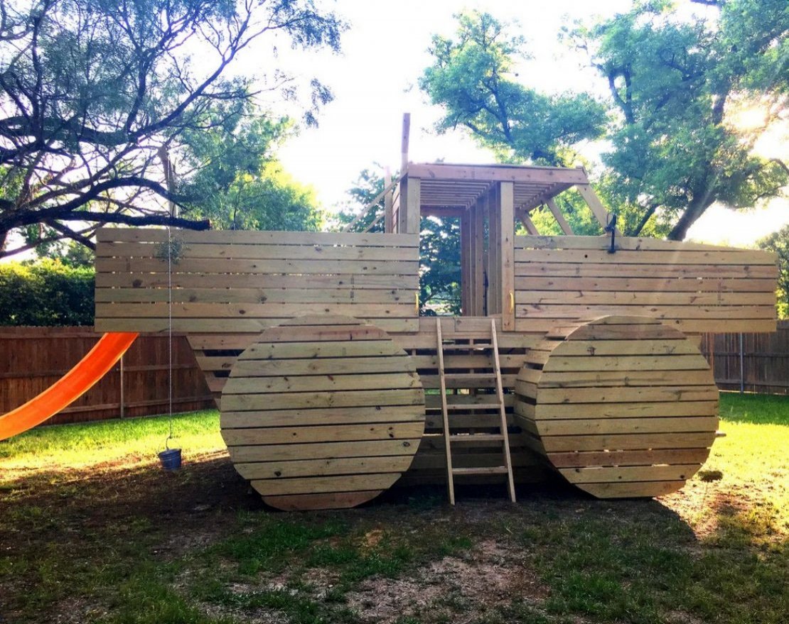 Множество мелких деталей добавляют реализма и радости, которую дети могут получить от этого дизайна. Моторный отсек открыт, чтобы дети могли залезть туда и поиграть. Монстр Трак включает в себя люк, место для горки высотой 183 см, сиденья, педали и другие детали.