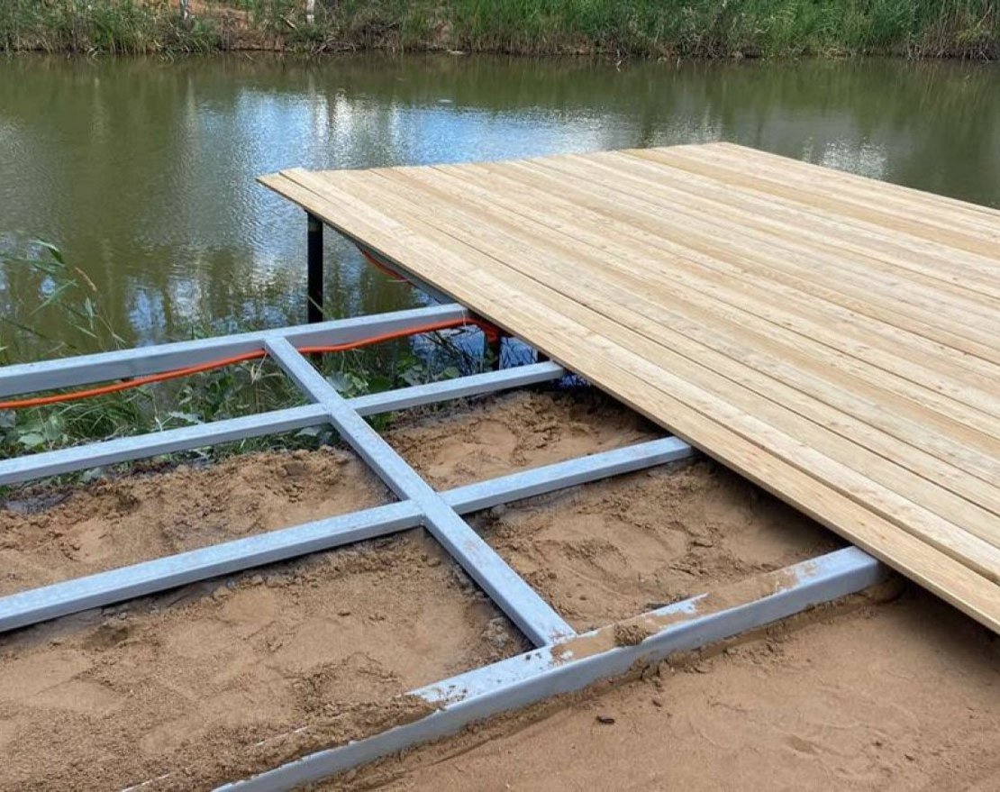 Деревянный пирс на металлическом каркасе обеспечит надежность и долговечность конструкции.
